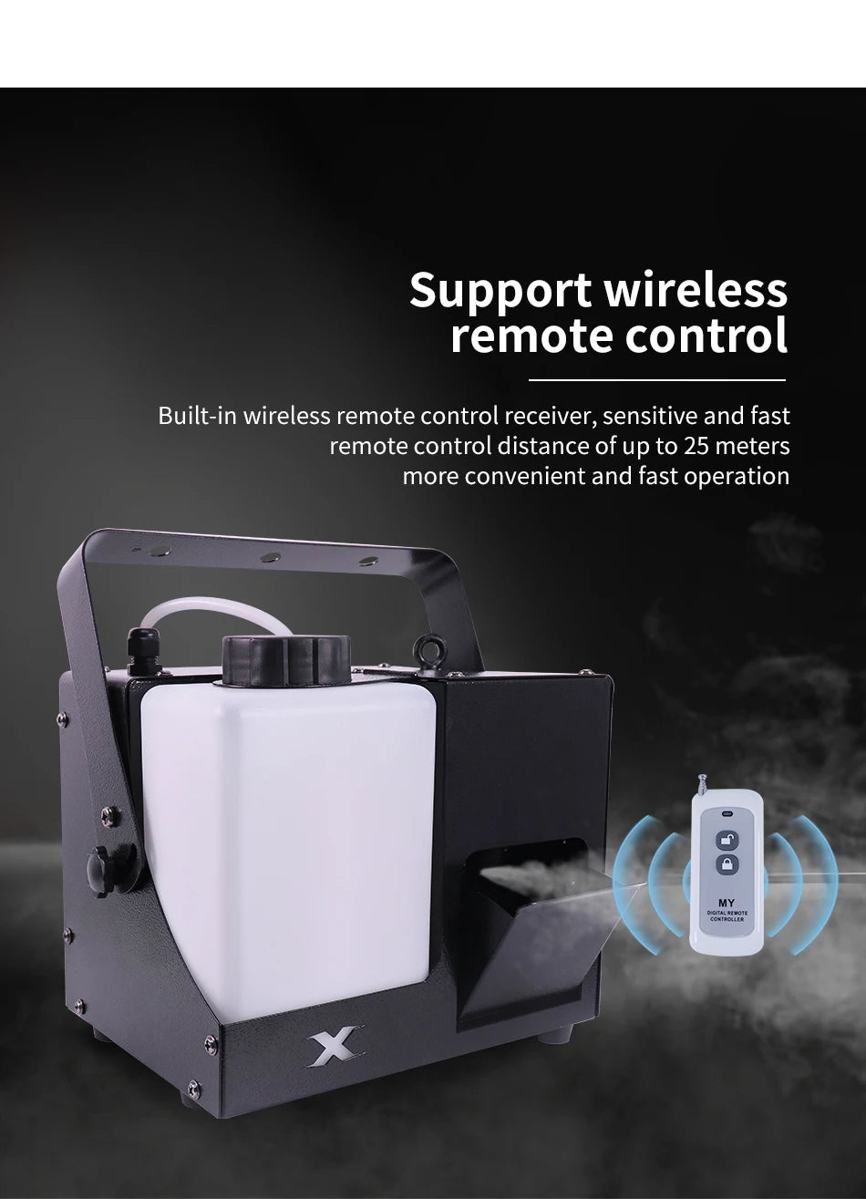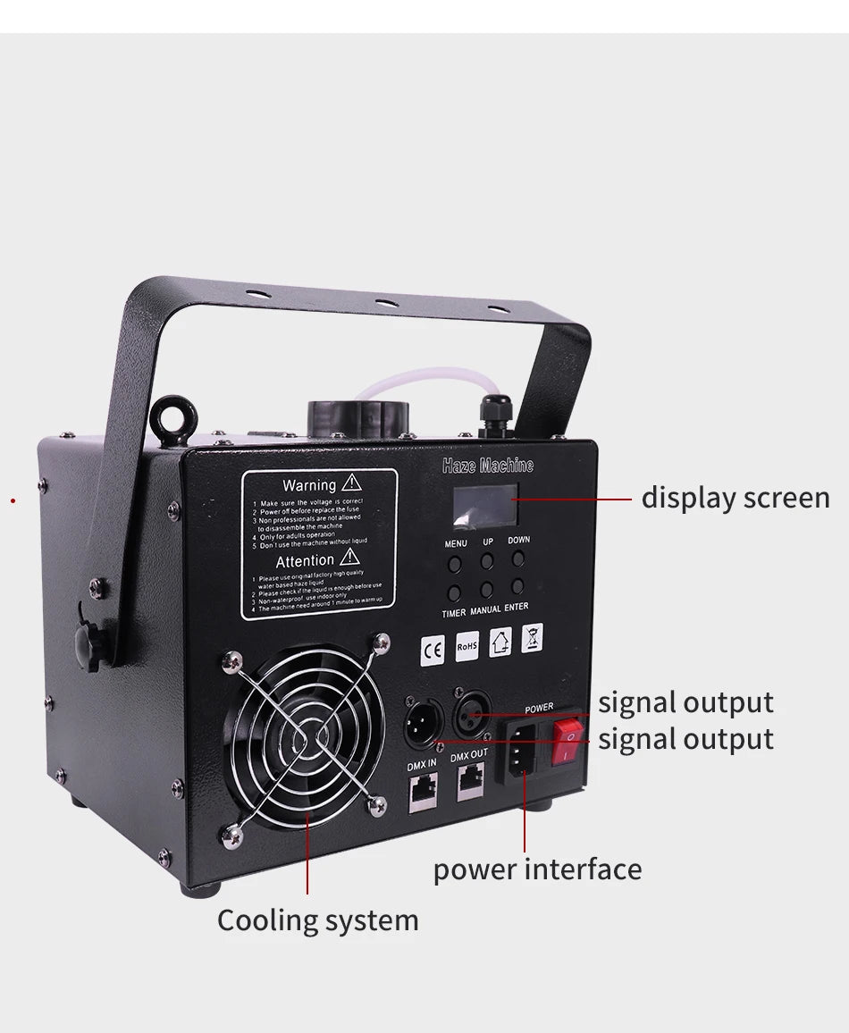 bestuur de Hazer makkelijk met de megeleverde afstandbediening en stel de Hazer helemaal in hoe jij wilt met de knoppen op de Hazer of via een DMX.