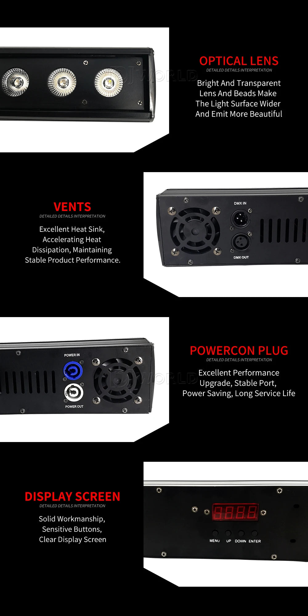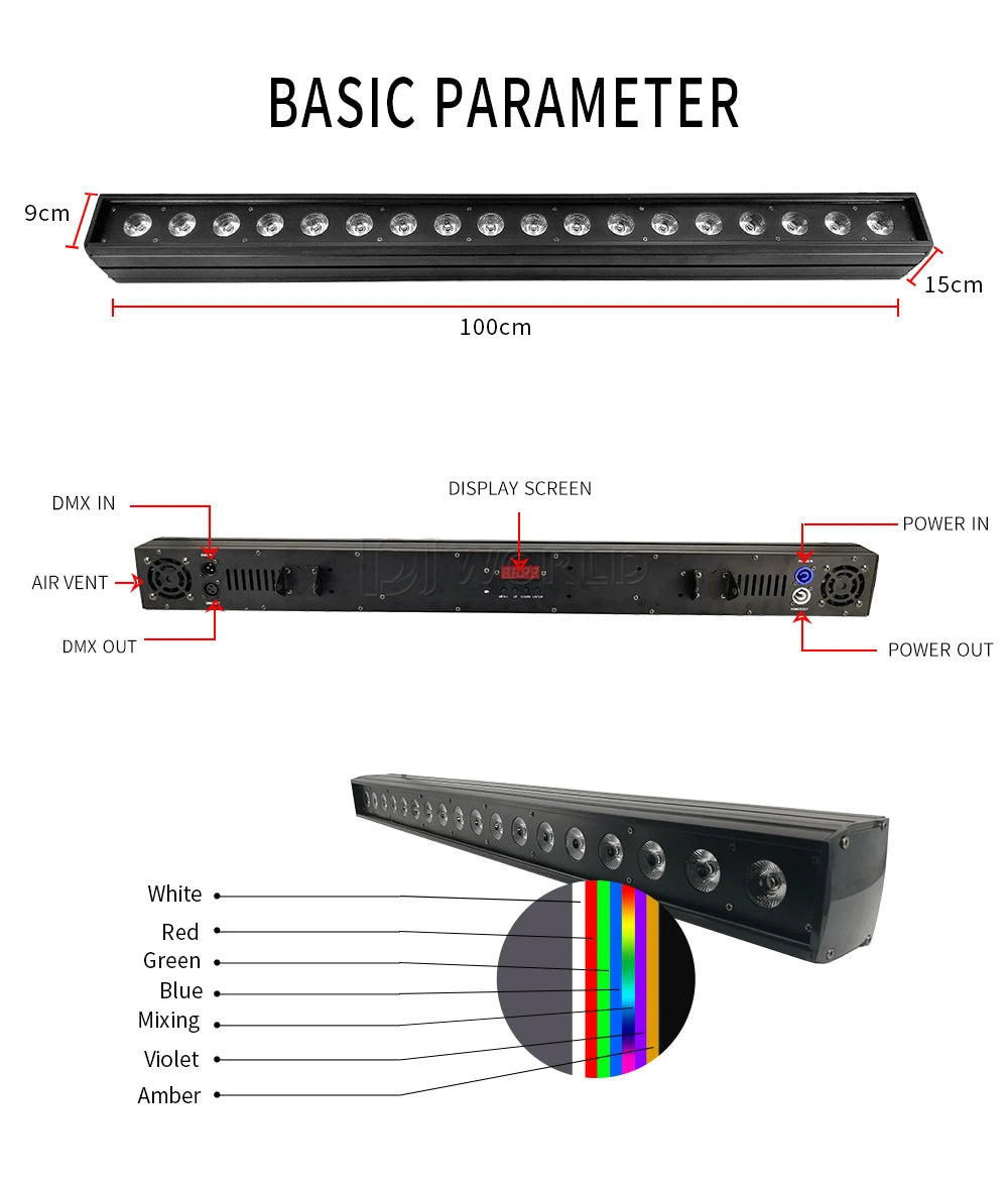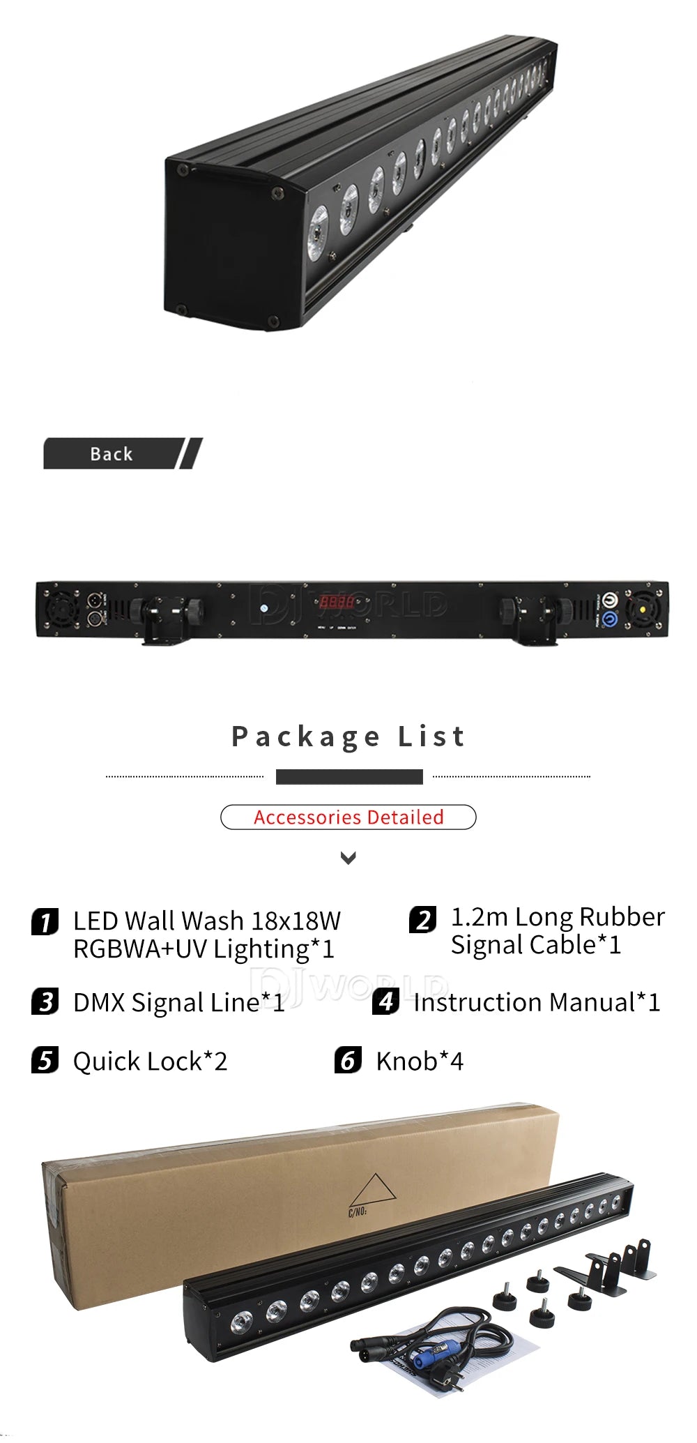 Verlicht uw evenementen en podia met de indrukwekkende 324W LED-wash wall lamp, die geavanceerde RGBWA A + U LED's combineert met een krachtige blacklight functie.