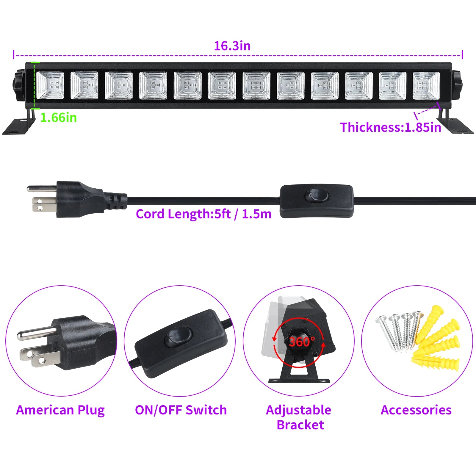 Krachtig en Fluorescerend: Deze 40W blacklight strip is voorzien van 40 hoogwaardige LED-lampjes en een groothoek van 120 graden. Het verlicht een gebied van 6x6 meter, ideaal voor glow-in-the-dark feesten, bodypaint, fluorescerende posters, en Halloween.