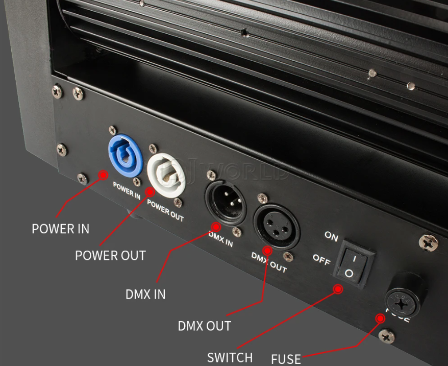 - Meerdere werkmodi: DMX512, Auto-run, master/slave, geluid-actief.