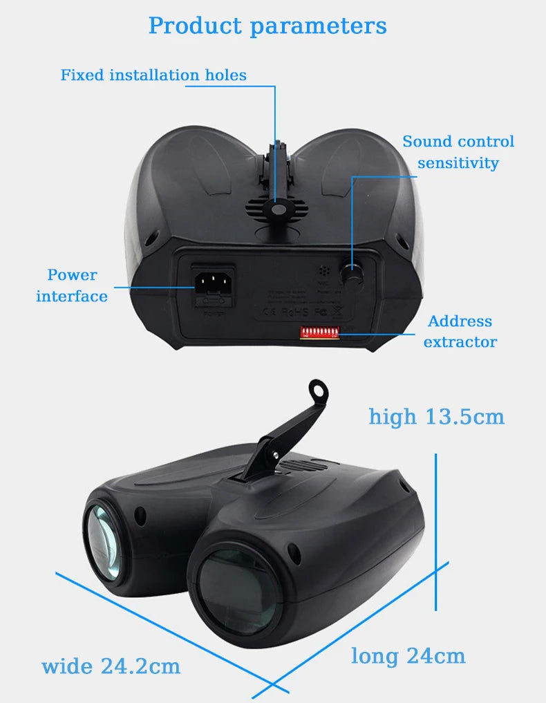 Een veelzijdige dubbele moonflower die met 128 LEDs de meest geweldige lichtshow patronen kan maken.