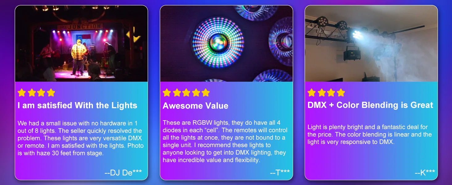- De lampen bevatten 14 x 4W RGBW LED's (totaal 54W) die zorgen voor heldere en levendige kleuren. Met de mogelijkheid om verschillende kleuren te mengen en een breed scala aan lichteffecten te creëren, zijn deze lampen perfect voor elk type evenement.